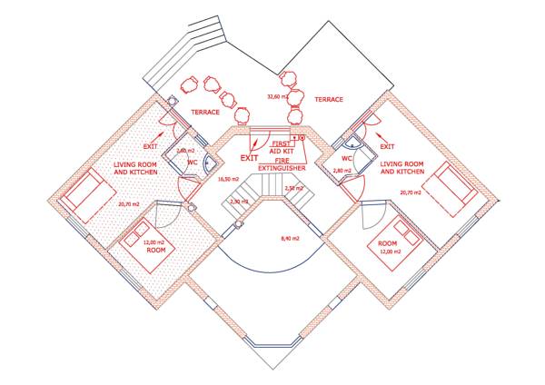 Our cozy and comfortable 1 room apartment of 43 square meters is located on the top floor of the villa, with a terrace (20 m2) with furniture. Each room with sea view.