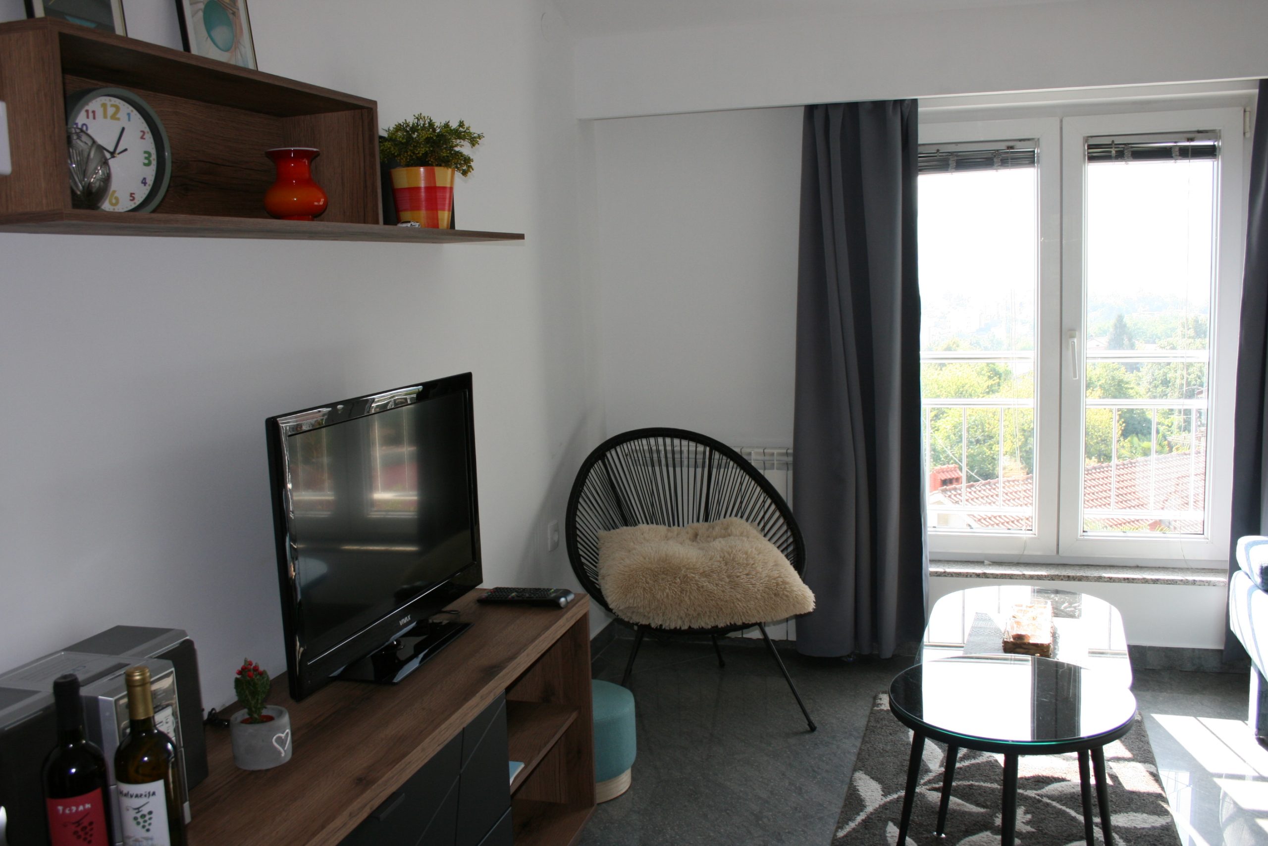 The bedroom has a double bed (1,6 x 2 m) while the living/dining room has a convertible sofa (1,6 x 2m).