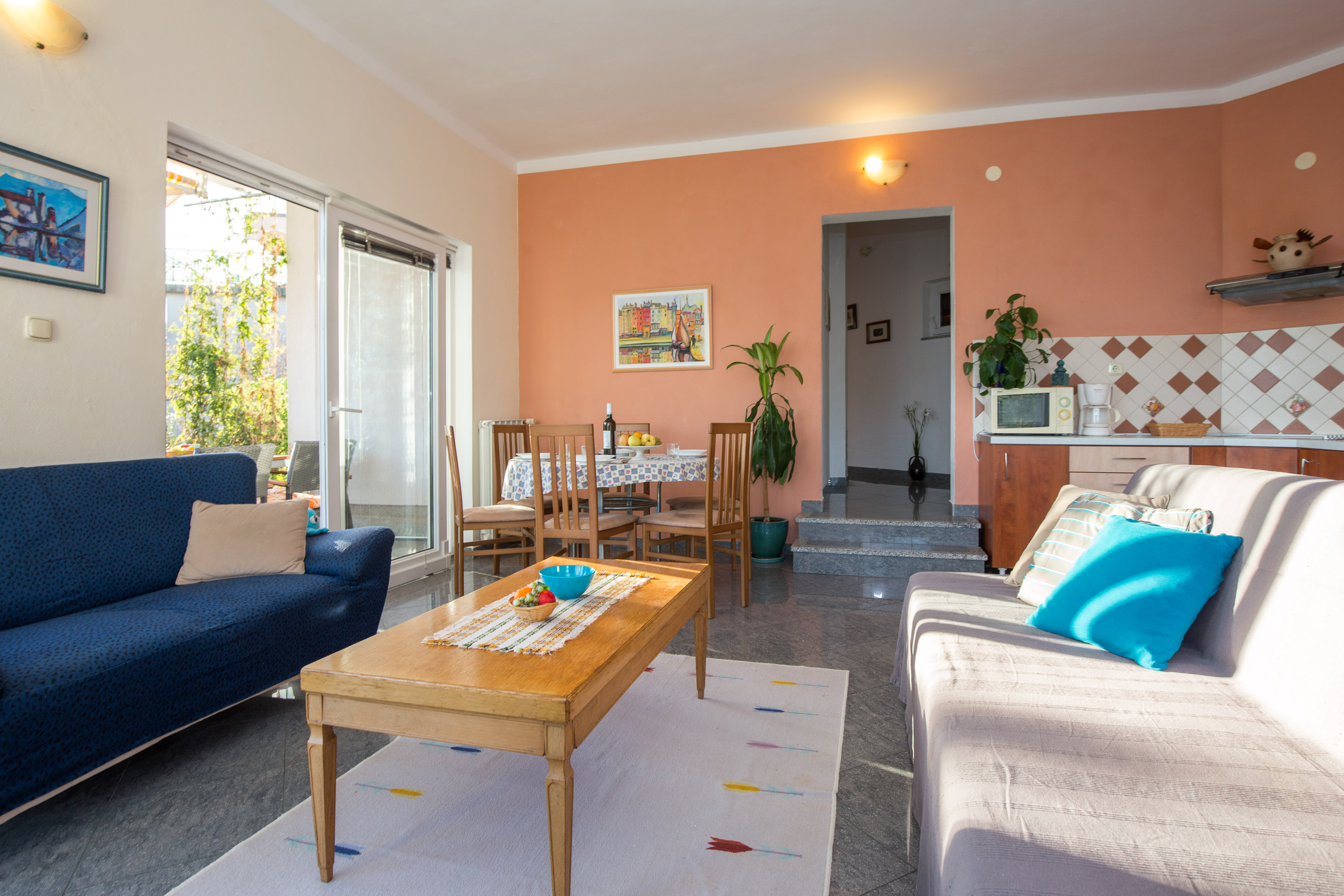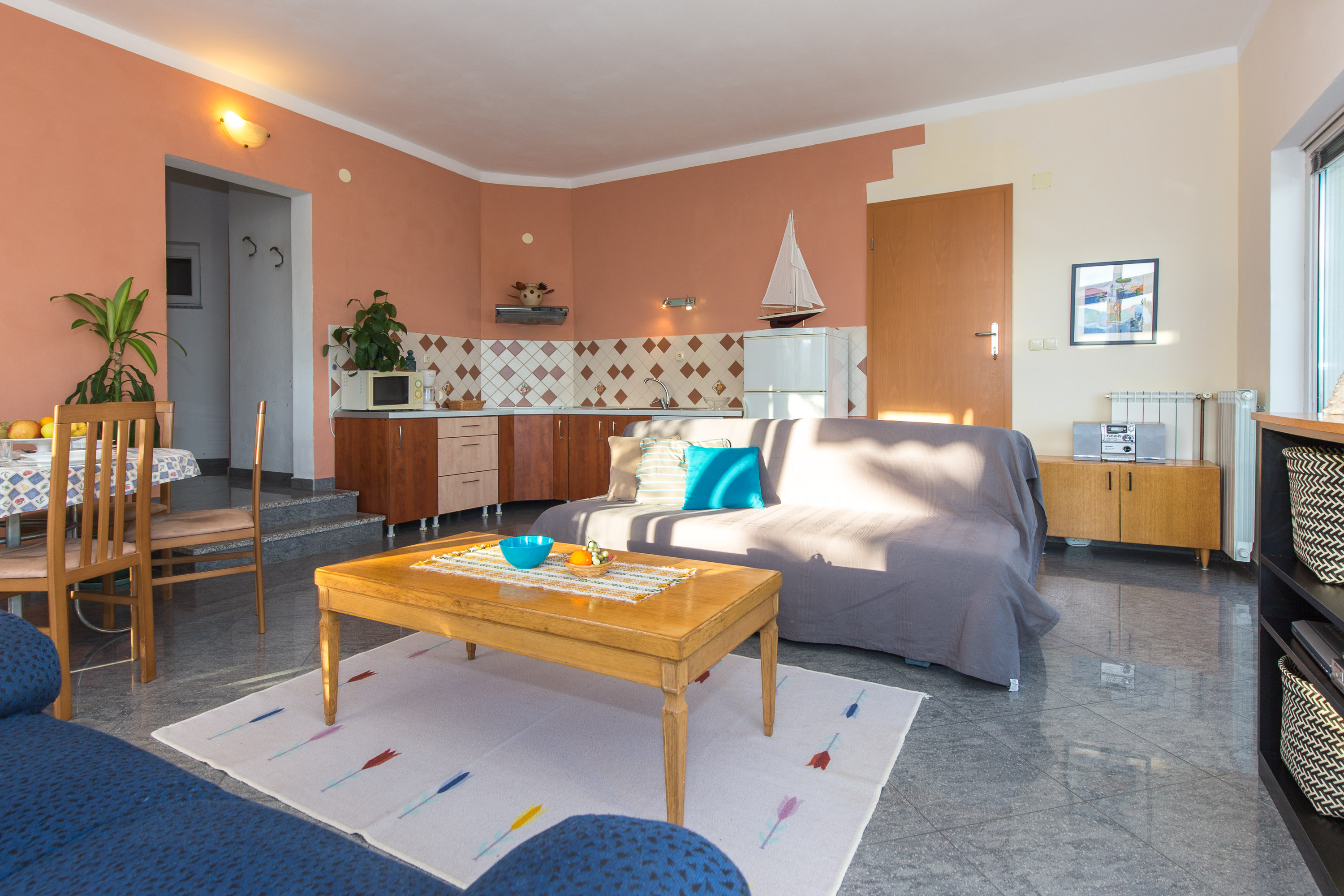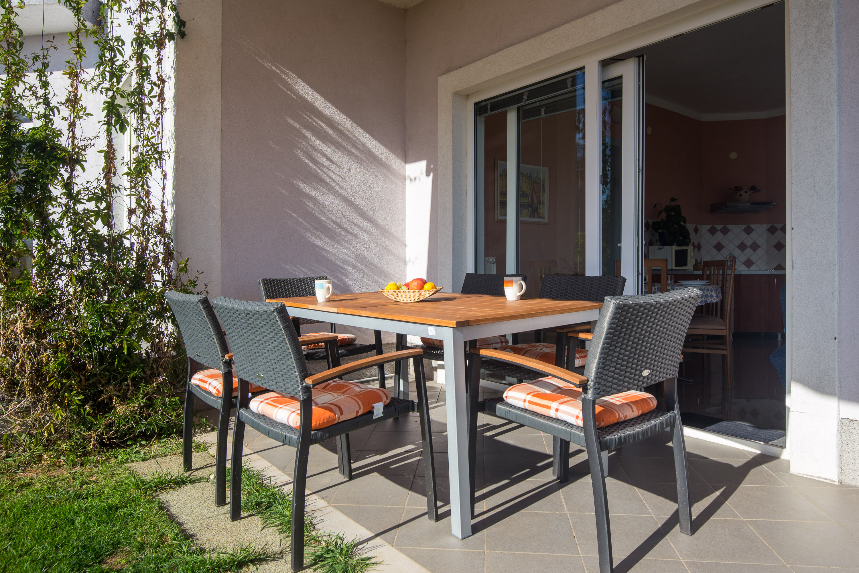 Our cozy and comfortable 2 room apartment of 64 square meters is located on the ground floor of the villa, with a terrace (22 m2) furniture. Each room, the balcony and the terrace are with sea view.
